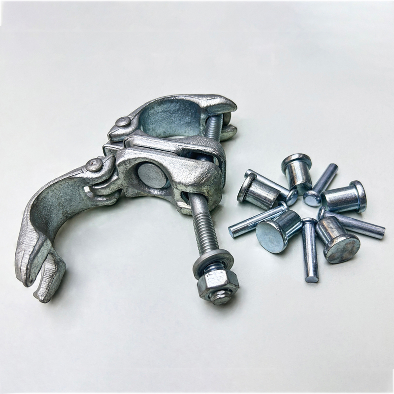 ข้อต่อนั่งร้าน มาตรฐานแต่ละแบบ ใช้หมุดย้ำต่างกัน หมุดย้ำเหล่านี้ให้แรงยึดที่ดีเยี่ยมและเชื่อมต่อได้ง่ายเพียงแค่ใส่เข้าไปในข้อต่อนั่งร้าน
